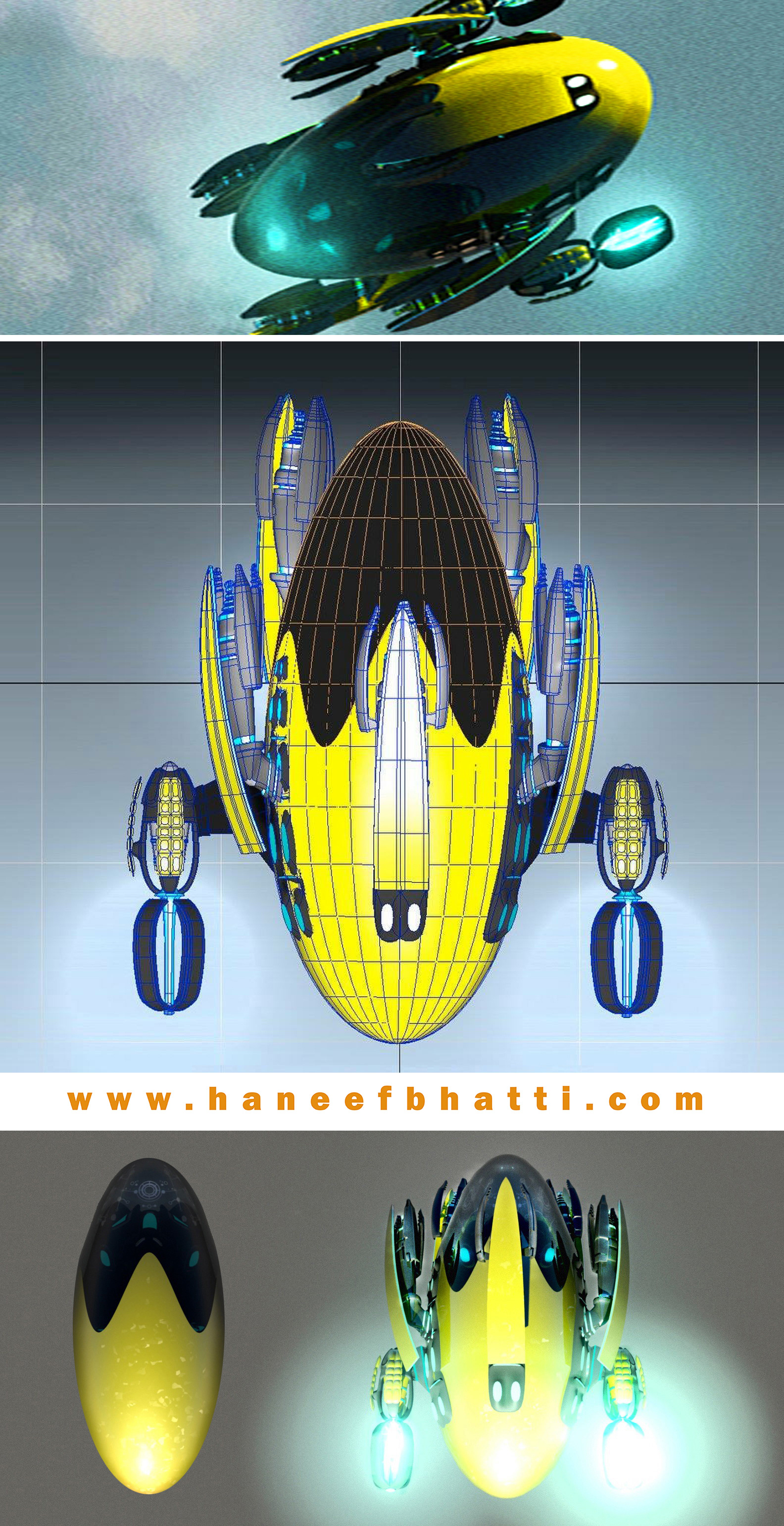 In order to design my feature projects, I taught myself Autodesk Maya in six days. This is some of my early 3D design work. I also modeled the Yellow Speeder (Star Wars fan art).
